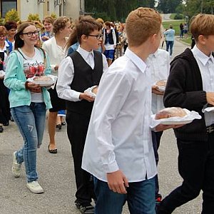 bochny chleba z tegorocznych zbiorów Gospodarzom Święta Plonów, wójtowi gminy