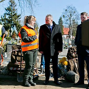 Wojewoda Mikołaj Bogdanowicz odwiedził dzisiaj ekipę Biura Poszukiwań i Identyfikacji IPN, która pod kierunkiem dr Alicji Paczoskiej-Hauke, prowadzi prace ekshumacyjne na cmentarzu przy ul. Kcyńskiej w Bydgoszczy. To tutaj, na bydgoskiej „Łączce”, komuniści potajemnie grzebali bestialsko zamordowanych patriotów.