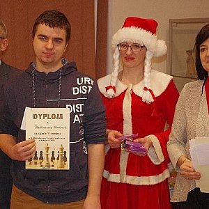 szachistów, bez względu na wiek, otrzymał słodki upominek od Mikołaja, a