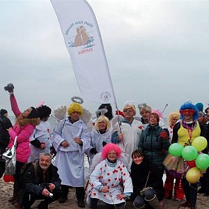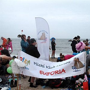 Na plaży tłok. Trudno było znaleźć miejsce na rozłożenie kawałka dywanika, rozgrzewka prowadzona przez profesjonalną specjalistkę od gimnastyki – i wreszcie hasło - "Morsy, do wody!". To trzeba było zobaczyć, tę ławę ludzi z banerami, flagami, transparentami wbiegającą do wody – niezapomniany widok. A w wodzie ratownicy WOPR baczący by nikomu nic złego się nie stało. Część stojąca w wodzie a część pływająca na skuterach wodnych i obserwująca ciżbę kłębiącą się w wodzie. Wszyscy, którzy weszli do wody z niej wyszli – czyli sukces!