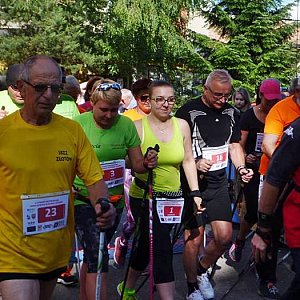 Parę minut później wystartowali kijkarze, a wśród nich Kasia Banaszkiewicz, Beata i Marek Kąckowscy na dystansie 6,5 kilometra. Dla tych ostatnich przygotowano nową, bardziej ciekawą i bardziej wymagającą trasę. Trasa wiodła parkiem miejskim, polami z dwoma trudnymi podejściami, co przy pokonaniu dwóch pętli dawało podejść cztery.