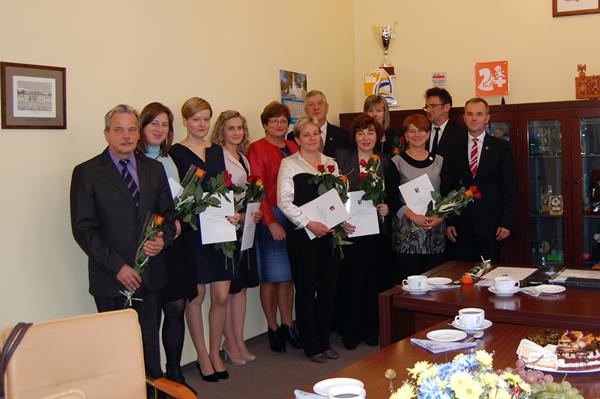 W gabinecie burmistrza, przy kawie i ciastku, w miłej atmosferze, rozmawiano o sukcesach wyróżnionych nauczycieli, ich zamierzeniach i planach osobistych oraz zawodowych. Miłym akcentem uroczystości była informacja pana Marka Tymeckiego o przebiegu uroczystości, jaka odbyła się 12 października b.r. na Uniwersytecie Wrocławskim, gdzie po raz trzeci wyróżniono Gminę Sępólno Krajeńskie certyfikatem "Samorządowy Lider Edukacji" a Burmistrza Sępólna Krajeńskiego uhonorowano wyróżnieniem specjalnym: Laurem 25 – lecia "Złotym Kagankiem Wolności".