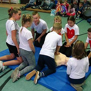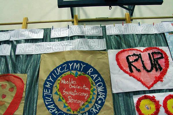 Punktualnie o godzinie 12:00 trzy grupy dzieci w szkolnej hali sportowej przystąpiły do uciskania i prowadzenia wdechów na fantomach. Na twarzach dzieci widać było zapał i determinację. Resuscytacja trwała nieprzerwanie przez 30 minut, przy gorącym dopingu ze strony uczniów, nauczycieli i rodziców. Pokaz ten z pewnością nie tylko wpłynął na liczbę dzieci - uczestników bicia rekordu, ale również zachęcił do wzięcia udziału w kolejnych szkoleniach dzieci do tej pory nie zainteresowanych nauką resuscytacji i udzielania pierwszej pomocy osobom potrzebującym.
