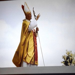 Część słowna była przerywana pokazem slajdów i nagraniami homilii św. Jana Pawła II. Chętni mieli okazję przedstawić swoje wspomnienia na temat polskiego papieża. Skorzystał z tego p. Henryk Dziarnowski odczytując swoje wierszowane wspomnienia i refleksje o papieżu. Również ja miałem okazję zaprezentować swój "Tryptyk dla Jana Pawła II". Spotkanie podsumował swoimi wspomnieniami proboszcz ks. prałat Henryk Lesner.