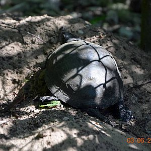 Dla pewności podesłałem fotki panu Jarosławowi Ramuckiemu, leśnikowi i miłośnikowi przyrody celem konsultacji. No i okazuje się, że w naszych jeziorkowych wodach mieszka sobie rzadki okaz i znajdujący się pod ścisłą ochroną żółw błotny. Czy na pewno?