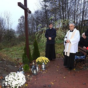 Uroczystość rozpoczęła się w Bralewnicy od złożenia przez Wójta Kęsowa Jarosława Janiszewskiego, zastępcy Wójta Jagodę Has, Sołtysa Wieszczyc Justynę Banaszek-Turzyńską i indywidualnie przez kilku mieszkańców wiązanek kwiatów i zapalenie zniczy pod pomnikiem w miejscu zamordowania kilku mieszkańców sołectwa i okolicy. Po złożeniu wiązanek Wójt wygłosił okolicznościowe przemówienia, ks. Sławomir Kunka proboszcz parafii w Mędromierzu Wielkim wygłosił homilię i poprowadził Koronkę Do Miłosierdzia Bożego odmówioną wspólnie przez wszystkich zgromadzonych pod pomnikiem.