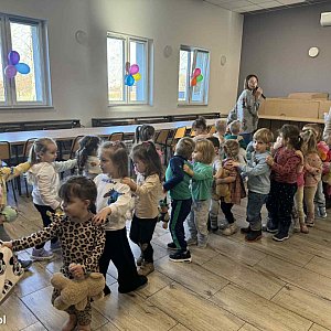 Na początku dzieci wysłuchały kilku wierszy z książki Wiesławy Pyrcz „O misiach i niedźwiadkach”. Dzięki temu mogły przenieść się w świat bajkowych bohaterów. Maluchy słuchały z zaciekawieniem, a następnie chętnie rozmawiały o przygodach pluszowych bohaterów i o tym, dlaczego misie są tak wyjątkowe. Każdy mógł też pochwalić się swoim, przyniesionym na spotkanie misiem. Przedszkolaki z entuzjazmem brały udział w przygotowanych konkursach i zabawach przy muzyce. Spotkanie było pełne radości i ciepła – dokładnie takiego, jakie kojarzy się z pluszowym misiem.
