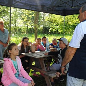 Na początek prezes Koła Pszczelarzy w Więcborku Zbigniew Chmielewski wraz z żoną Panią Heleną i zaprzyjaźnionymi pszczelarzami z okolicy przeprowadził interesującą prelekcję na temat tego jak zachowywać się w pasiece, aby nie stresować pszczół i nie przeszkadzać im w ciężkiej, codziennej pracy. Mówił o tym jak bardzo potrzebne są nam pszczoły w życiu, ile dobrego robią dla naszego środowiska, ile żyją, czym się zajmują podczas swojego krótkiego życia oraz o zdrowotnych walorach miodu i jego pochodnych.
