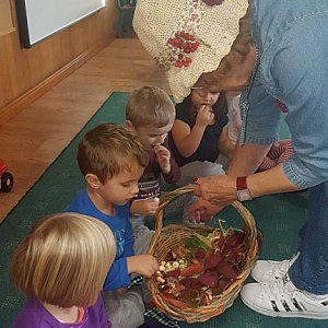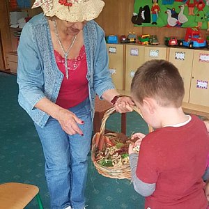 Kolejną atrakcją były odwiedziny studentek Uniwersytetu Trzeciego Wieku, działającego przy Stowarzyszeniu "Duże Różowe Słońce". Panie: Maria Milachowska, Barbara Wypych, Teresa Kowalczyk i Janina Bańkowska, umilały dzieciom czas jesiennymi zabawami oraz czytaniem wierszy i opowiadań na temat drzew i ich owoców. Pani Teresa Fidera zaśpiewała m.in. "Balladę o Sępolence" i przeczytała wiersze z tomiku własnego autorstwa.