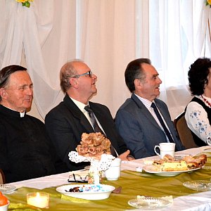 Za serce i poświęcenie w prowadzeniu "swoich owieczek" otrzymał podziękowania, kwiaty i upominki. W spotkaniu uczestniczyli mieszkańcy, pielgrzymi oraz zaproszenie goście. Zaprezentowały się zespoły działające w Wiejskim Ośrodku Kultury min. zespół Modraki, duet N&A oraz zespół Lutowianie. Nie zabrakło oczywiście pieśni pielgrzymkowych i maryjnych.