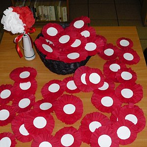 8 listopada 2017 r. w filii bibliotecznej w Ślesinie dominował kolor biały i czerwony. W związku z obchodami Święta Niepodległości Towarzystwo Miłośników Kultury Ludowej DOMAN zorganizowało w bibliotece zajęcia, na których wykonano kotyliony, na sobotnie spotkanie patriotyczne.