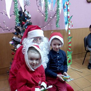Obejrzeliśmy również prezentację ukazującą pracę jaką wykonały dzieci przez ostatnie dwa tygodnie aby przygotować się odpowiednio do Mikołajek. Roboty było wiele. Małe Skrzaty zdążyły upiec pierniczki, wykonać ozdoby na choinkę z masy solnej i bombek styropianowych oraz prezenty z papierowej wikliny dla najbliższych. Pracowite były te popołudnia ale opłaciło się.