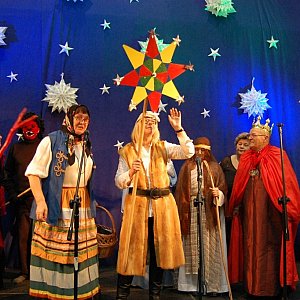 Świąteczne życzenia złożyli obecnym przedstawiciele organizatorów tego wydarzenia. Radosnym, patriotycznym programem poruszył serca wszystkich występ uczniów pierwszej klasy Szkoły Podstawowej Nr 1, a Wesołe Nutki oraz wokalistki z więcborskiego MGOK-u zaśpiewały kilka kolęd i pastorałek. Przy takiej okazji nie mogło też zabraknąć kolędników, w których role wcieli się znani i lubiani aktorzy teatrzyku Rym Cym Cym. Emerytowany proboszcz więcborskiej parafii, ksiądz Franciszek Gabor poprowadził wspólną modlitwę i pobłogosławił wigilijne potrawy, którymi zaproszeni zostali ugoszczeni w ten szczególny wieczór. Nim jednak zaczęto je kosztować, wszyscy z opłatkiem w ręku ruszyli składać sobie nawzajem serdeczności.