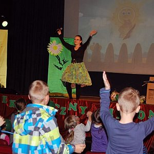 Już od wczesnych godzin przedpołudniowych sala widowiskowa Miejsko-Gminnego Ośrodka Kultury zaludniała się małymi ekologami, którzy przybywali tu z całej gminy. Witała ich wesoła piosenka i cały szereg przeróżnych atrakcji.