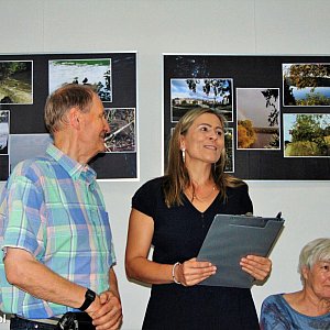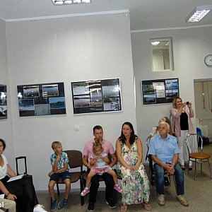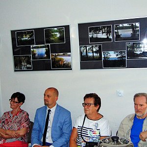 Popołudniowe spotkanie było nie tylko okazją do obejrzenia wspaniałych zdjęć ale również do interesującej dyskusji. Goście wernisażu dowiedzieli się, dlaczego Pan Cyryl wybrał nasze miasto. Otóż cała przygoda rozpoczęła się za sprawą jego małżonki, która znalazła ogłoszenie w Telegazecie. A po przyjeździe było już tylko zauroczenie od pierwszego wejrzenia. Małżeństwo spędza wolny czas zawsze w tym samym domku wczasowym. Piękno naszej gminy docenił również syn Państwa Tomaszewskich. Jest to ojciec z zakonu Jezuitów, który miał okazję pełnić posługę w wielu zakątkach świata. Jednak widok z domku w Ośrodku Wczasowym „Morena” jest według niego niepowtarzalny. Pan Cyryl powiedział również, iż najbardziej fascynuje go motyw drogi. Wiele fotografii przedstawia różne drogi - gdyż ludzkie życie jest drogą. Człowiek cały czas staje przed wyborem, który kierunek wybrać.
