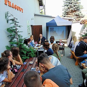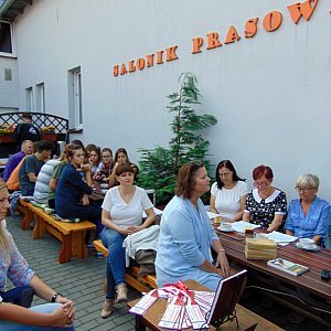 W piątkowe przedpołudnie do biblioteki licznie przybyła więcborska młodzież licealna. Nie zabrakło także przedstawicielek Dyskusyjnego Klubu Książki działającego przy Miejsko-Gminnej Bibliotece Publicznej w Więcborku. Pogoda tego dnia dopisała, dlatego całe wydarzenie odbyło się w letniej czytelni.