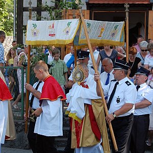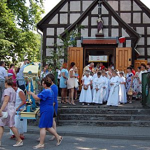 Procesja Bożego Ciała przeszła dzisiaj także przez Wielowicz. Po mszy świętej, przed południem z kościoła pw. św. Jakuba Apostoła parafianie wraz z księżmi, proboszczem Januszem Dróżkowskim i Piotrem Krakowiakiem ponieśli ze śpiewem na ustach Chrystusa obok swoich domostw i gospodarstw na znak swojej wiary w Jego obecność w Najświętszym Sakramencie.