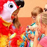 Kolorowa, psotna papuga Benia, szefowa Papuziego Gaju, do którego zaproszone zostały dzisiaj wszystkie dzieci, przewodziła szalonej zabawie i pysznemu Śniadaniu na Trawie przed Centrum Kultury i Sztuki w Sępólnie Krajeńskim.