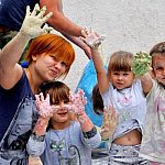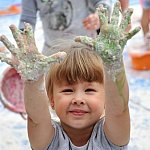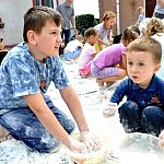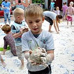 Na parkingu przed Świetlicą Środowiskową UŚMIECH w Więcborku odbyły się otwarte zajęcia z sensoplastyki, w których wzięło udział ponad 30 dzieci. Było kolorowo, mokro i? brudno. Dzieci były zachwycone.