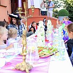 Królewskie "śniadanie na trawie" odbyło się rankiem 11 sierpnia w Artystycznym Ogrodzie przed Centrum Kultury i Sztuki. Do suto zastawionego stołu zasiedli honorowi goście Króla Artusa racząc się pysznościami przygotowanymi przez kucharzy Jego Królewskiej Mości.