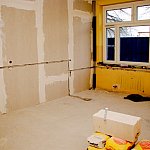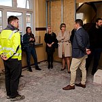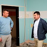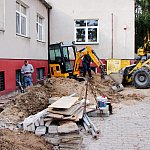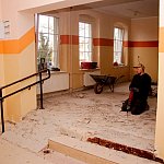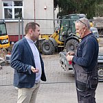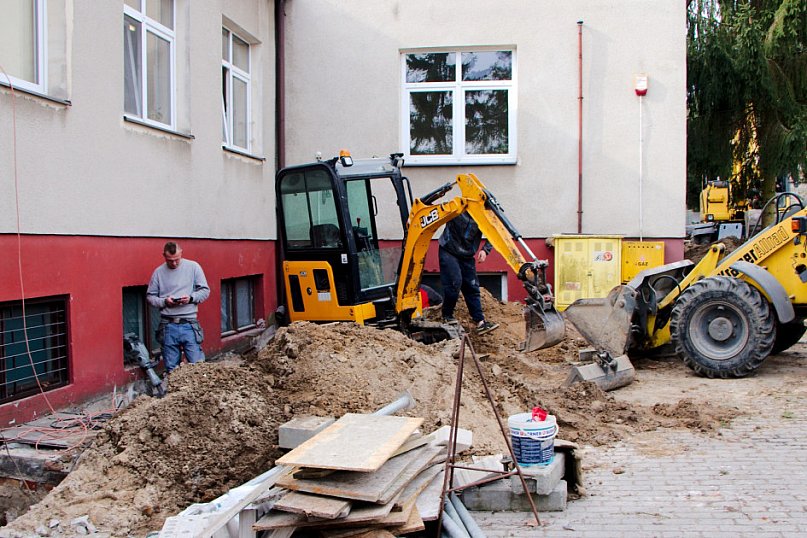 Następnie Burmistrz udał się do budynku szkoły przy ul. Głównej w Osieku nad Notecią (dawne gimnazjum), gdzie zapoznał się z aktualnym stanem robót oraz rozmawiał z wykonawcą na temat prowadzonych prac remontowo-budowlanych.