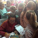 W Bibliotece Publicznej im. J. Iwaszkiewicza w Sępólnie Krajeńskim odbyło się we wtorek "skarpetkowe" spotkanie z autorką książek dla dzieci, panią Justyną Bednarek, dotyczące jej najnowszej książki "Niesamowite przygody dziesięciu skarpetek". W spotkaniu uczestniczyli uczniowie Szkoły Podstawowej nr 3 w Sępólnie oraz Szkoły Podstawowej w Wiśniewie wraz z wychowawczyniami.