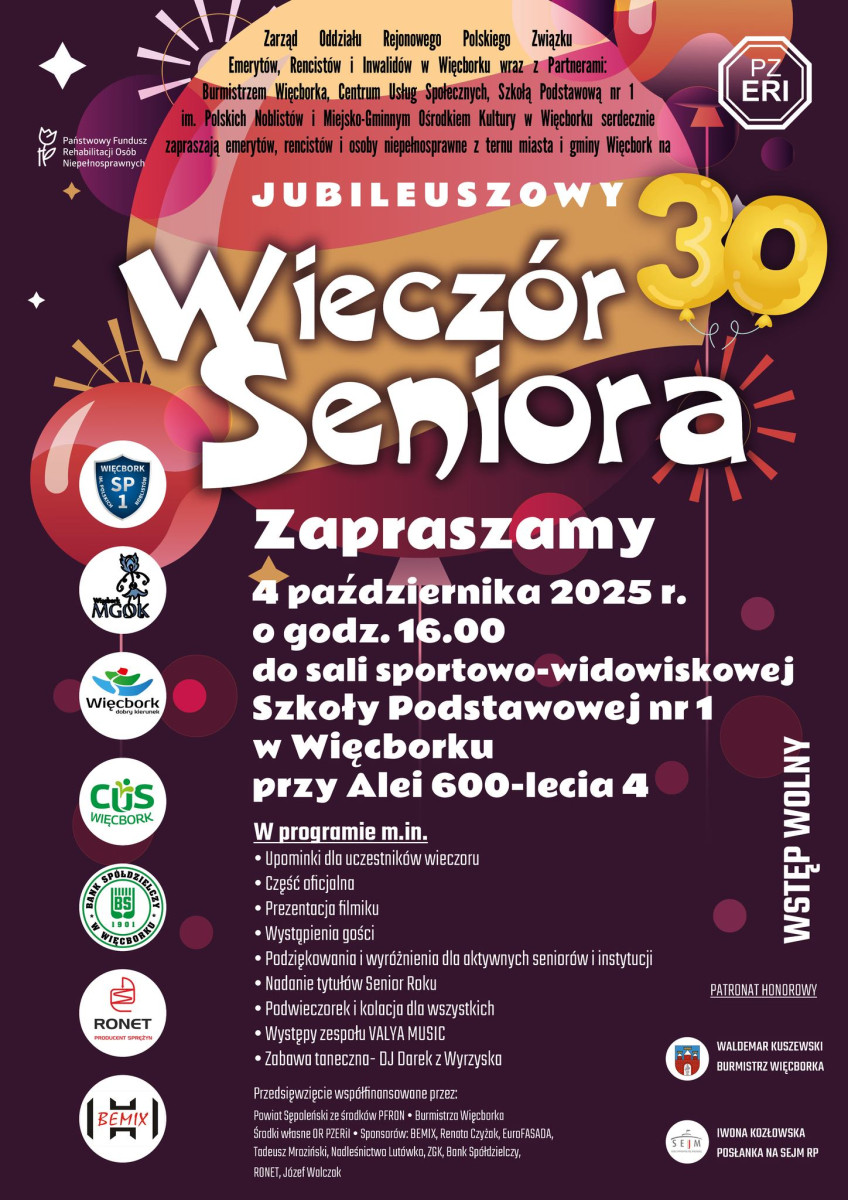 Zapraszamy na XXX Jubileuszowy Wieczór Seniora--ZOR PZERiI w Więcborku