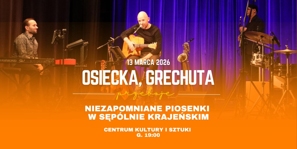 Mieszkańcy Sępólna Krajeńskiego i okolic będą mieli niepowtarzalną okazję, by przeżyć wieczór pełen wzruszeń i ponadczasowej muzyki. 13 marca 2026 roku o godzinie 19:00 w Centrum Kultury i Sztuki odbędzie się koncert „Osiecka, Grechuta – niezapomniane piosenki | Tomasz Steńczyk z zespołem”.