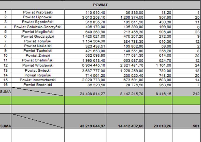 Łączna kwota przyznana na województwo kujawsko-pomorskie wynosi ponad 57 mln zł. Na tę sumę składają się: