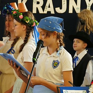 Dużo mówiono także o wierzeniach, symbolu Matki Boskiej Radosnej Leśnej. Jedna z grup z kolei stworzyła autorski Escape Room: Czy odkodujesz Krajnę?, inna - grę planszową: Co je tero lous?, a kolejna częstowała gości jadłem: kuchem żydowskim, zupą nic i plincami z gzikiem. Nie zapomniano oczywiście wspomnieć o gwarze krajeńskiej, czyli Szportownej (żartobliwej) Krajnie. Dowiedzieliśmy się m.in., że gwara istniała wcześniej niż język narodowy oraz poznaliśmy kilka zabawnych słów w gwarze krajeńskiej.