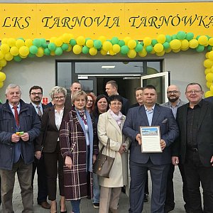 Wójt Gminy Tarnówka Jacek Mościcki wspólnie z Prezesem LKS Tarnovia Tarnówka Michał Cochór dokonali uroczystego otwarcia nowego budynku socjalno-gospodarczego przy boisku sportowym w Tarnówce. Inwestycja została zrealizowana dzięki dofinansowaniu w wysokości 3.166.200,00 zł z środków Rządowego Funduszu Polski Ład. To kolejny krok w kierunku rozwoju infrastruktury sportowej w gminie Tarnówka. Gmina Tarnówka konsekwentnie stawia na sport dzieci i młodzieży, nieustannie modernizując i rozwijając bazę sportową.
