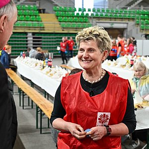 Ponad 1200 osób zasiadło do wspólnego, wielkanocnego stołu w Hali Sportowo-Widowiskowej Immobile Łuczniczka w Bydgoszczy. Spotkanie, przygotowane przez Caritas Diecezji Bydgoskiej we współpracy z inicjatywą „Bazylika Pomaga”, władzami miasta i województwa oraz organizacjami pomocowymi, stało się przestrzenią nie tylko świątecznego posiłku, ale przede wszystkim bliskości i nadziei.
