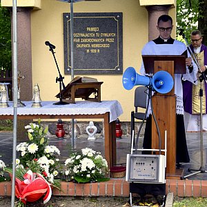 W 81 rocznicę wybuchu II Wojny Światowej na cmentarzu w Radzimiu odprawiona została msza święta w intencji pomordowanych mieszkańców powiatu sępoleńskiego i ofiar wojny. Uczestniczyli w niej mieszkańcy Radzimia, delegacja samorządowców i pracowników Urzędu Miasta w Kamieniu z Burmistrzem Wojciechem Głomskim i Przewodniczącym Rady Kazimierzem Warylakiem, rodziny ofiar i księża z dekanatu.