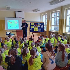W trakcie spotkań policjanci w przystępny sposób omówili zasady bezpiecznego poruszania się po drogach. Dzieci dowiedziały się, jak poprawnie korzystać z przejścia dla pieszych, kiedy szczególnie zachować ostrożność oraz dlaczego noszenie elementów odblaskowych może ocalić życie. Uczniowie aktywnie uczestniczyli w zajęciach, zadawali pytania i z entuzjazmem dzielili się własnymi obserwacjami z drogi do szkoły.
