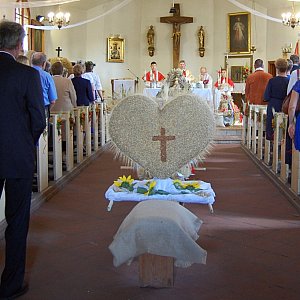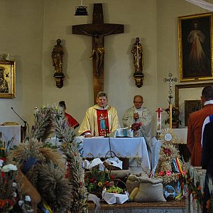 Tradycyjnym korowodem do zabytkowego kościoła rozpoczęły się dożynkowe uroczystości w Wielowiczu. Tam, mszę świętą dziękczynną koncelebrowali k.k. Andrzej Pacer, proboszcz parafii w Wąwelnie oraz Franciszek Kurowski, proboszcz parafii w Sitnie. Po nabożeństwie, mieszkańcy i goście udali się na plac rekreacyjny w centrum wsi, gdzie dopełnieniem tradycji święta plonów było przekazanie przez Starostów Dożynek Gminnych chleba z tegorocznych zbiorów oraz darów ziemi gospodarzowi uroczystości Wójtowi Gminy Sośno Leszkowi Stroińskiemu i Przewodniczącej Rady Gminy Krystynie Wąsik. Ci zaś, podzielili gospodarskie dary między gości Dożynek.