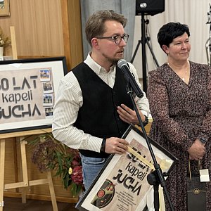 W sobotę co prawda kozy jubilatom nikt nie podarował, ale były inne upominki i życzenia: od gminy Kamień Krajeński, wiceburmistrz Marty Husarek oraz Kazimierza Warylaka, od powiatu sępoleńskiego reprezentowanego przez Paulinę Wendę (która zaśpiewała nawet piosenkę z dedykacją) i Aleksandra Atamańskiego, od dyrektora Miejsko-Gminnego Ośrodka Kultury w Kamieniu Dominika Gostomskiego i Ewy Wiese – kierowniczki Wiejskiego Domu Kultury w Dąbrówce, od gospodyń z KGW w Dąbrówce oraz od zaprzyjaźnionych gości. – Dziękuję, że zawsze możemy na Was liczyć – mówił dyrektor M-GOK. Były też gratulacje, bo taki jubileusz jest nie lada wyczynem. – Jesteśmy dumni, że kapela jest właśnie z Dąbrówki – podkreślała Ewa Wiese, która przypomniała gościom skróconą historię grupy, okraszoną anegdotami.