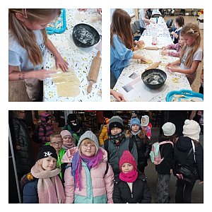 Kulminacyjnym punktem tego dnia były warsztaty kulinarne. Jak na karnawał przystało zostały upieczone faworki zwane również chrustem. Zgodnie z przepisem najpierw dzieci samodzielnie przygotowały ciasto i wykroiły chruściki, które po upieczeniu i posypaniu cukrem pudrem wszyscy ze smakiem zjedli.
