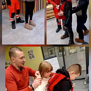 Jednym z najbardziej interesujących wydarzeń było spotkanie z ratownikiem, Panem Łukaszem Nowakiem, który opowiedział o swojej pracy oraz o zasadach udzielania pierwszej pomocy. Uczestnicy dowiedzieli się, jak reagować w sytuacjach zagrożenia i jak ważna jest szybka pomoc drugiemu człowiekowi. Dzieci z dużym zainteresowaniem zadawały pytania i chętnie brały udział w pokazie.