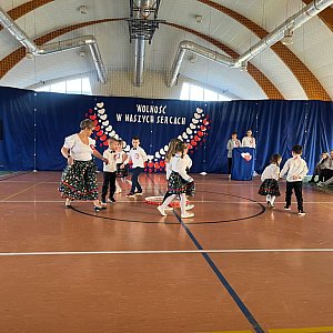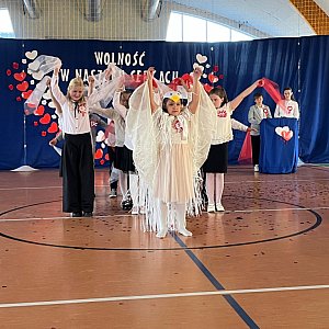 Podczas uroczystości uczniowie zaprezentowali poruszający montaż słowno-muzyczny poświęcony historii odzyskania przez Polskę Niepodległości. Recytacje, śpiew patriotycznych pieśni oraz inscenizacje historyczne przypomniały zgromadzonym o trudnej drodze naszego narodu do wolności.