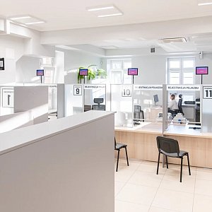 Wydział Komunikacji Starostwa Powiatowego w Pile wrócił do swojej siedziby na parterze budynku przy Al. Niepodległości. Inwestycja o wartości ponad 742 tys. zł znacząco poprawiła standard obsługi: liczbę stanowisk zwiększono z 15 do 18 (13 do rejestracji pojazdów i 5 do praw jazdy), a wąski korytarz zastąpiono nowoczesną, przestronną poczekalnią.