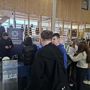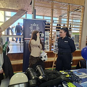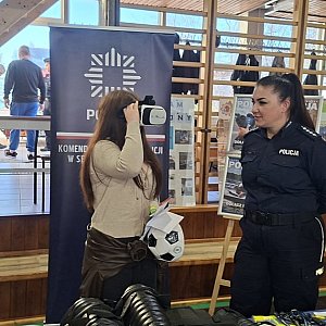 Na przygotowanym stoisku można było nie tylko porozmawiać o specyfice służby, ale także zobaczyć z bliska sprzęt wykorzystywany na co dzień przez policjantów. Zainteresowani mieli okazję sprawdzić swoje reakcje na symulatorze, a także dowiedzieć się, jak w praktyce wygląda proces rekrutacji oraz ścieżka zawodowa w Policji.
