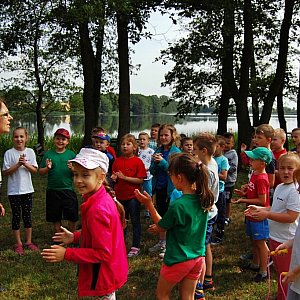Autokar z dziećmi pojawił się obok kajakarni punktualnie o godzinie dziewiątej. Cicha przystań od tej chwili rozbrzmiewała wesołym gwarem. Ale nie tylko dla przyjemności tu przybyli. Celem wyjazdu było głównie to, by przy okazji zabawy poznawać otaczający świat.