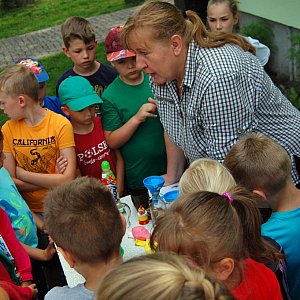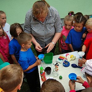 Pierwszą spośród wielu atrakcji przygotowała pani Grażyna Witczak z Krajeńskiego Parku Krajobrazowego. Pani Grażyna zademonstrowała dzieciom szereg eksperymentów, których tematem przewodnim było "powietrze". Dzieci słuchały z zapartym tchem, a i same chętnie garnęły się do wykonywania doświadczeń.