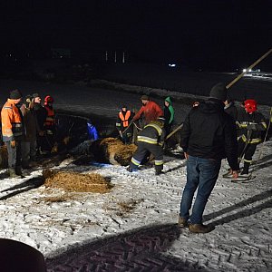 Wczoraj, o godzinie 21:38, w Dąbrówce gmina Kamień Krajeński, pod bydłem domowym zarwał się lód, na stawie. W bardzo trudnej akcji ratunkowej brały udział dwa zastępy straży pożarnej PSP Sępólno Krajeńskie i OSP Kamień Krajeński oraz miejscowi rolnicy. Najprawdopodobniej ucierpiało pięć sztuk bydła, z czego dwie sztuki udało się uratować. Działania strażaków były bardzo utrudnione z uwagi na panujące niskie temperatury.
