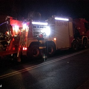 15 lutego br. o godz. 21:51 KP PSP w Sępólnie Krajeńskim otrzymała zgłoszenie o zdarzeniu w miejscowości Zboże gm. Sępólno Krajeńskie. Na łuku drogi wojewódzkiej nr 241 samochód ciężarowy zjechał na przeciwny pas jezdni i uderzył w budynek mieszkalny. W wyniku zderzenia poważnemu uszkodzeniu uległa konstrukcja budynku, w tym dach i ściana frontowa.