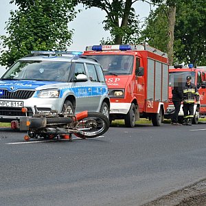 Kolizja motoru z samochodem osobowym w Zabartowie