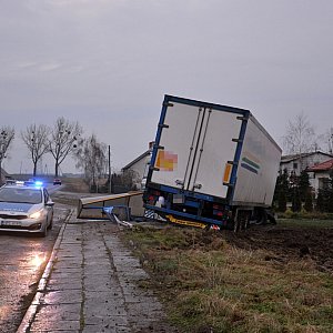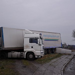 Dzisiejszy poranek na drogach naszego regionu był bardzo śliski. Padająca marznąca mżawka i nieposypane przez piaskarko - solarki drogi zmieniły się w lodowiska. Fatalne warunki drogowe były przyczyną groźnie wyglądającej kolizji w Świdwiu, koło Sępólna Krajeńskiego. Kierujący samochodem ciężarowym marki MAN wpadł w poślizg i wypadł z drogi zmiatając przystanek PKS-u. Na szczęście nikt w tym zdarzeniu nie ucierpiał.