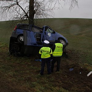 Zgłoszenie o wypadku wpłynęło do dyżurnego nakielskiej policji dzisiaj (29.01) krótko po 11.00. Na miejsce zostały zadysponowane wszystkie służby ratunkowe. Jak wynika ze wstępnych ustaleń policjantów wyjaśniających okoliczności zdarzenia, jadący w stronę Szubina renault trafic z nieustalonych dotąd przyczyn zjechał z drogi i dachował, a następnie uderzył w przydrożne drzewo. Pojazdem kierował 40-letni mieszkaniec Szubina.