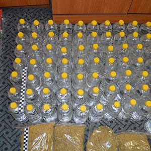6 lutego br., policjanci zatrzymali do kontroli pojazd marki VW Passat, którym kierował 65-letni mężczyzna mieszkaniec powiatu złotowskiego. Podczas kontroli na siedzeniu samochodu policjanci ujawnili 10 litrów alkoholu bez polskich znaków akcyzy. Kryminalni podejrzewali, że mężczyzna może posiadać więcej nielegalnego towaru. Podejrzenia te potwierdziły się podczas przeszukania pomieszczeń mieszkalnych i gospodarczych zatrzymanego mężczyzny, gdzie policjanci zabezpieczyli 13 kilogramów krajanki tytoniowej, 121 litrów litrów alkoholu oraz 360 paczek papierosów bez polskich znaków akcyzy.