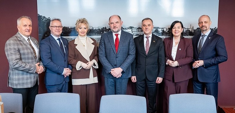 Marszałek Piotr Całbecki odwiedził wczoraj (15 stycznia) Sępólno Krajeńskie, gdzie spotkał się z przedstawicielami lokalnych władz samorządowych, odwiedził podopiecznych Centrum Opiekuńczo-Mieszkalnego oraz wziął udział w spotkaniu z ministrem rolnictwa i rozwoju wsi Stefanem Krajewskim. Gospodarz województwa spotkał się z posłanką Iwoną Kozłowską, ze starostą sępoleńskim Jarosławem Tadychem, z burmistrzem Sępólna Krajeńskiego Waldemarem Stupałkowskim, wójtem gminy Sośno Piotrem Dobrzańskim, burmistrzem Kamienia Krajeńskiego Natalią Marciniak i burmistrzem Więcborka Waldemarem Kuszewskim.